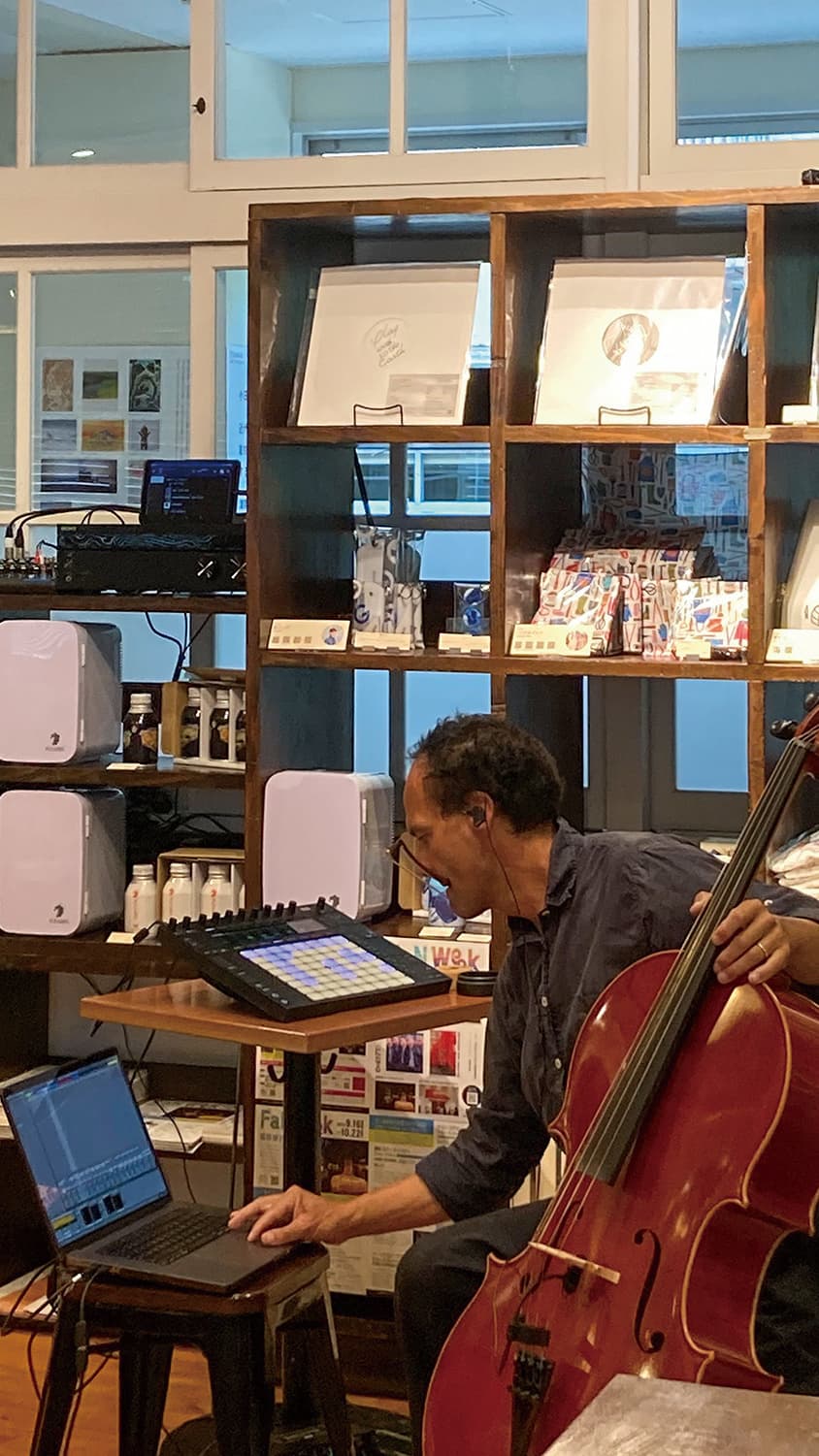 私自身、ダンスのウォームアップの一番初めにサイモンの音楽をかけると、心に余裕が生まれ、安心して自分の身体をゆだねられる空間に居るような気持ちになります。まるでマインドに余白を作り、せわしない日常から、今という瞬間に集中するゾーンへ導いてくれるような感覚です。そんなサイモンの生演奏で作られる空間は、ダンス作品について考える友人や短歌を創る人、音を楽しみに来た人たち、福岡のアーティストさんたちにも好評でした。