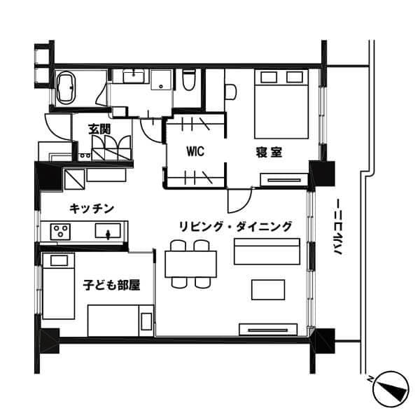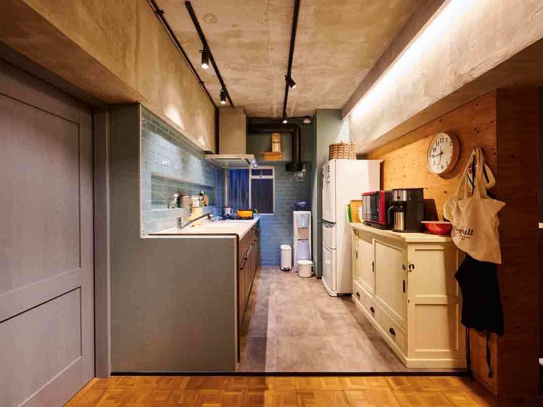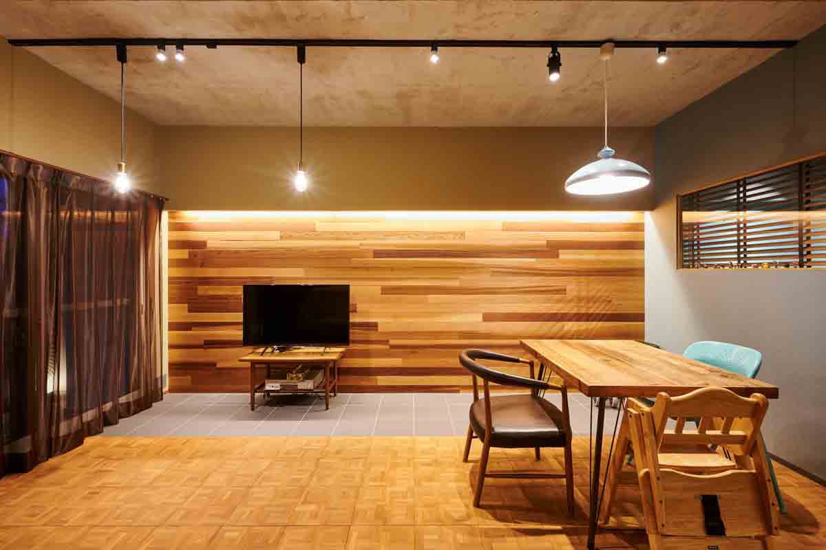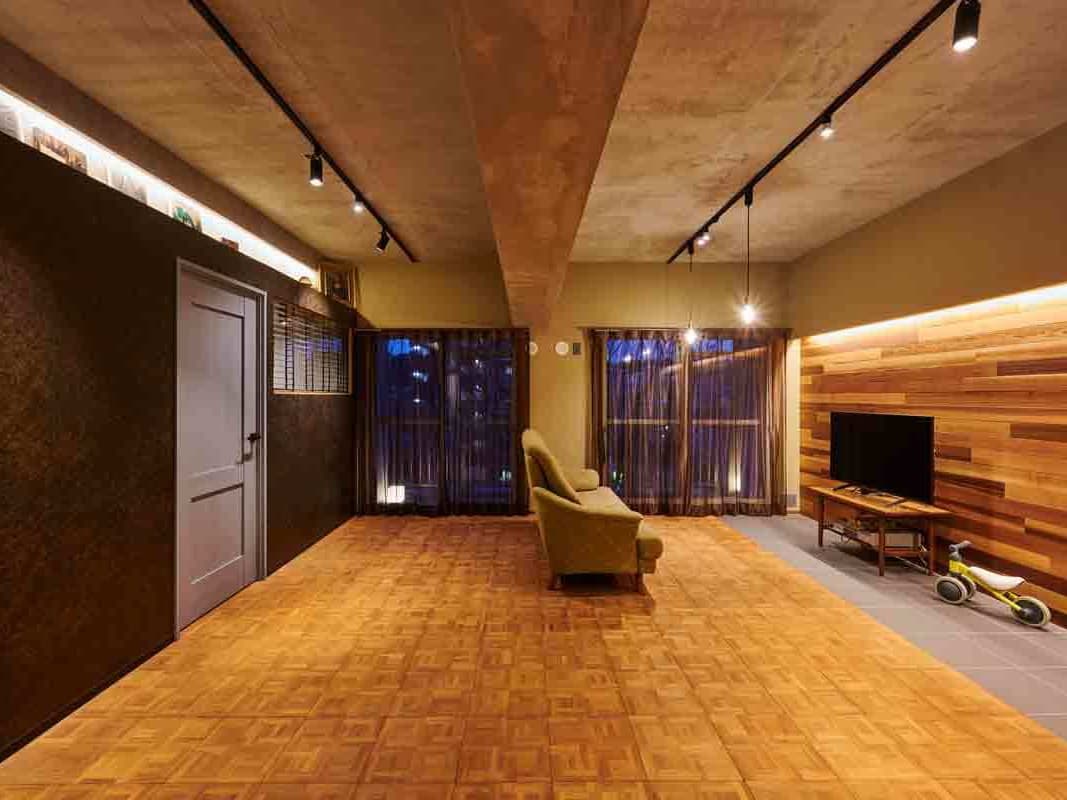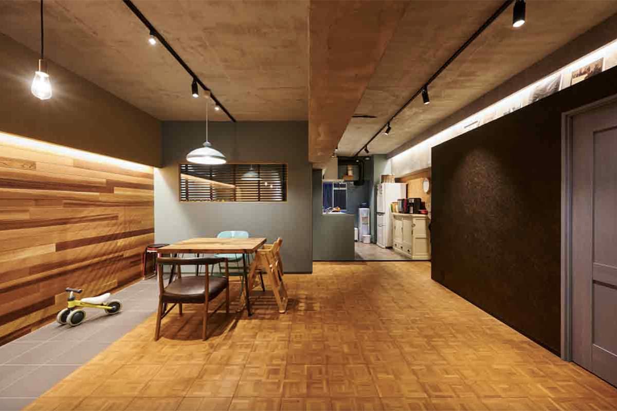 福岡市中央区の都心ビンテージ物件を探し、人気スポットでもある「けやき通り」の物件が見つかった。三人の家族が暮らしやすい2LDK+WICとミニマルな間取りとし、玄関スペースとLDKの間にはドアを配置せず、ワンルーム空間として70㎡の床面積以上の広さを感じる演出を行なっている。各部屋に様々なクロスを貼り分け、家族の個性を全面に演出した遊び心のあるオンリーワンデザインとなっている。