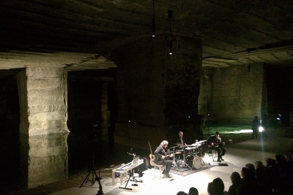 パドヴァ周辺に竣工した作品に授与されるヴェネト州賞は、パドヴァからも近い元石切場の洞窟を、イギリスの建築家デヴィッド・チッパーフィールド卿が再生して話題を集めた「アルカリ採石場」が受賞し、今回の授賞式イベントはここで開催されました。まるで神殿のような迫力ある石造りの空間に透き通る水が張られたとても幻想的な空間で、音響効果も素晴らしく、石切場のオーナーの話によれば、普段は非公開でもツアー見学の希望に応じて公開したり、コンサートやパーティーなどのイベント会場として貸し出しているとのことです。