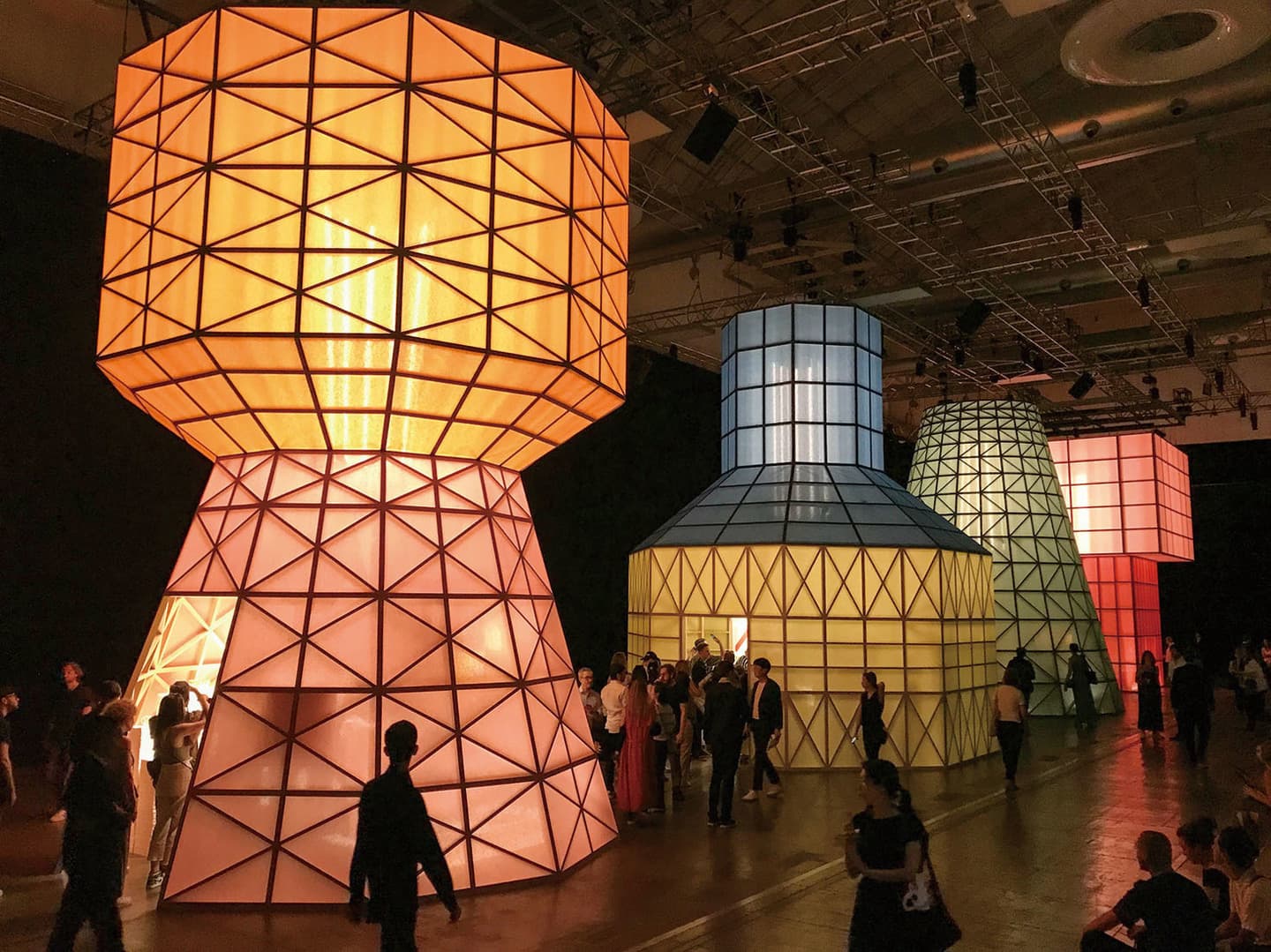 ⑧毎年注目を浴びるエルメスの展示会場は、まるで光の漏れる行燈のよう。