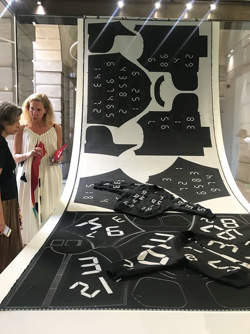 ⑤イッセーミヤケのブティックでは宮島達男とのコラボ作品を展示。