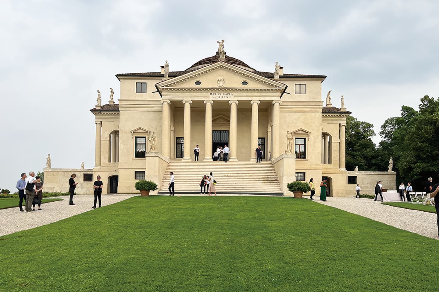 授賞式の会場は、例年と同じようにパドヴァの街中から貸切大型バスで一斉に連れて行かれます。誰も行き先を知らされないままサプライズで辿り着いたのは、パラーディオの傑作で世界遺産にも登録されているラ・ロトンダでした。