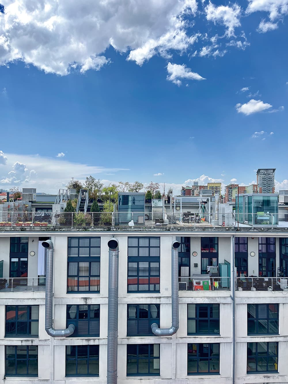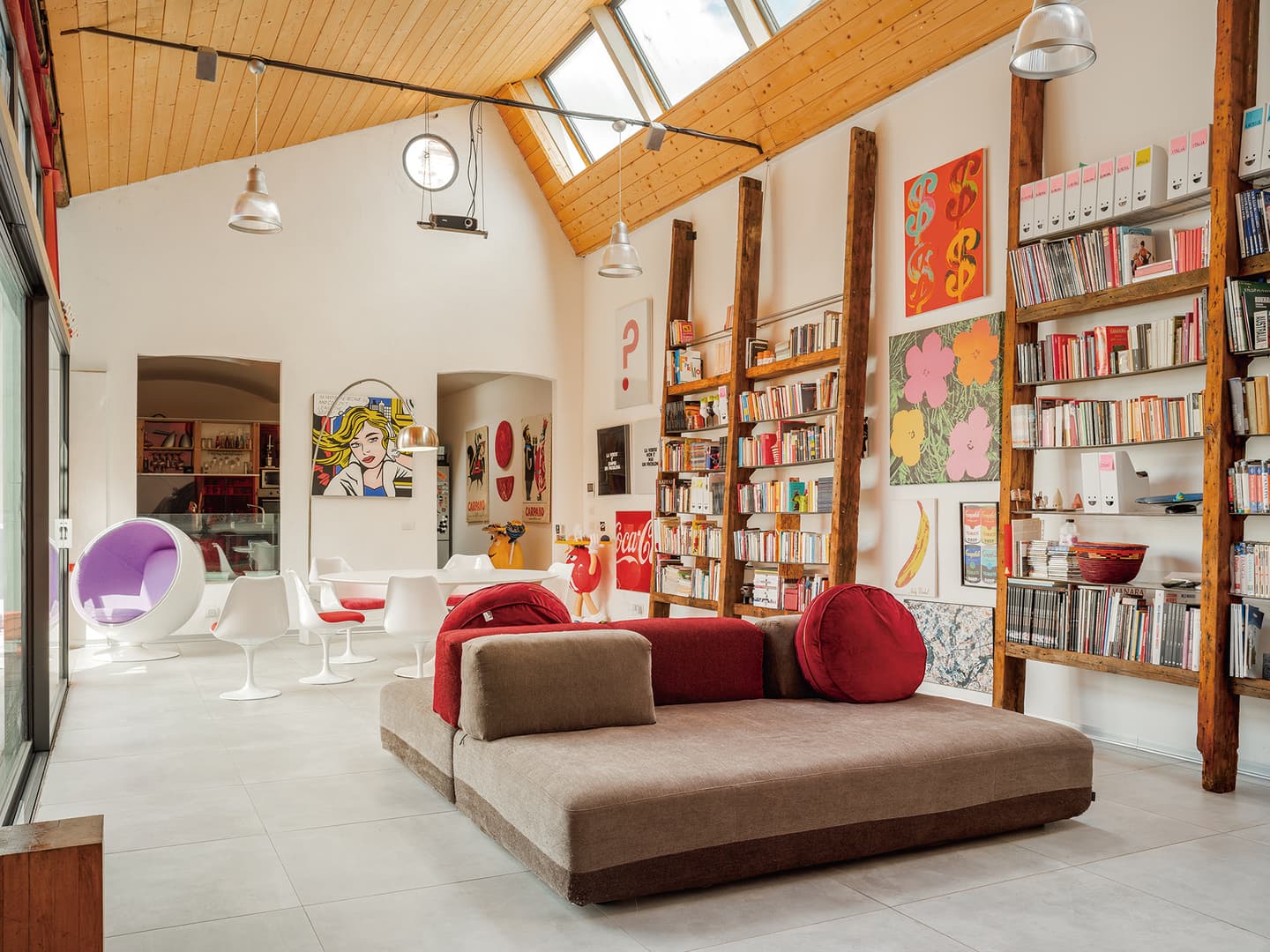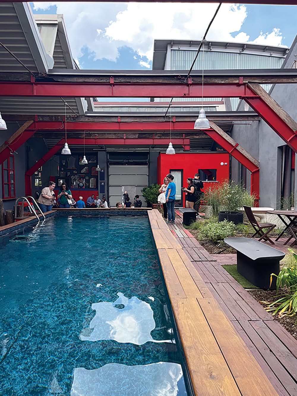 中でも今回から公開された住宅「Trinchieri Loft」は、住宅部門で断トツの入場者数を記録しました。かつての工場地帯の一角に位置し、トリノの地場産業で知られる蒸留酒ベルモットの工場跡を大胆にリノベした住宅兼ゲストハウスです。中庭の緑とプールを囲むように居住スペースが配置され、工場跡ならではの天井高のおかげで内部まで明るく広々と開放的ながらも、プライバシーは保たれた居心地の良い家でした。