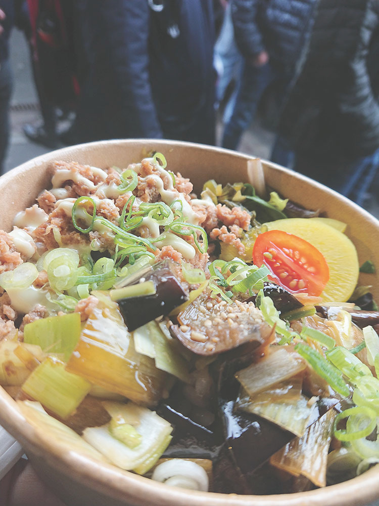 どのお店も立ち止まってゆっくり見たくなるものばかりで、友達とのんびり回るのも楽しいです。歩き回ってお腹が空いたら、美味しいごはんで腹ごしらえ! 半熟卵のスコッチエッグ、タイ料理のパッタイやガパオライス、グリーンカレー、オイスターやパスタなど。日本食が恋しくて、結局今回は丼ものを選びましたが、次に訪れる際はぜひ異国の料理も試してみたい!