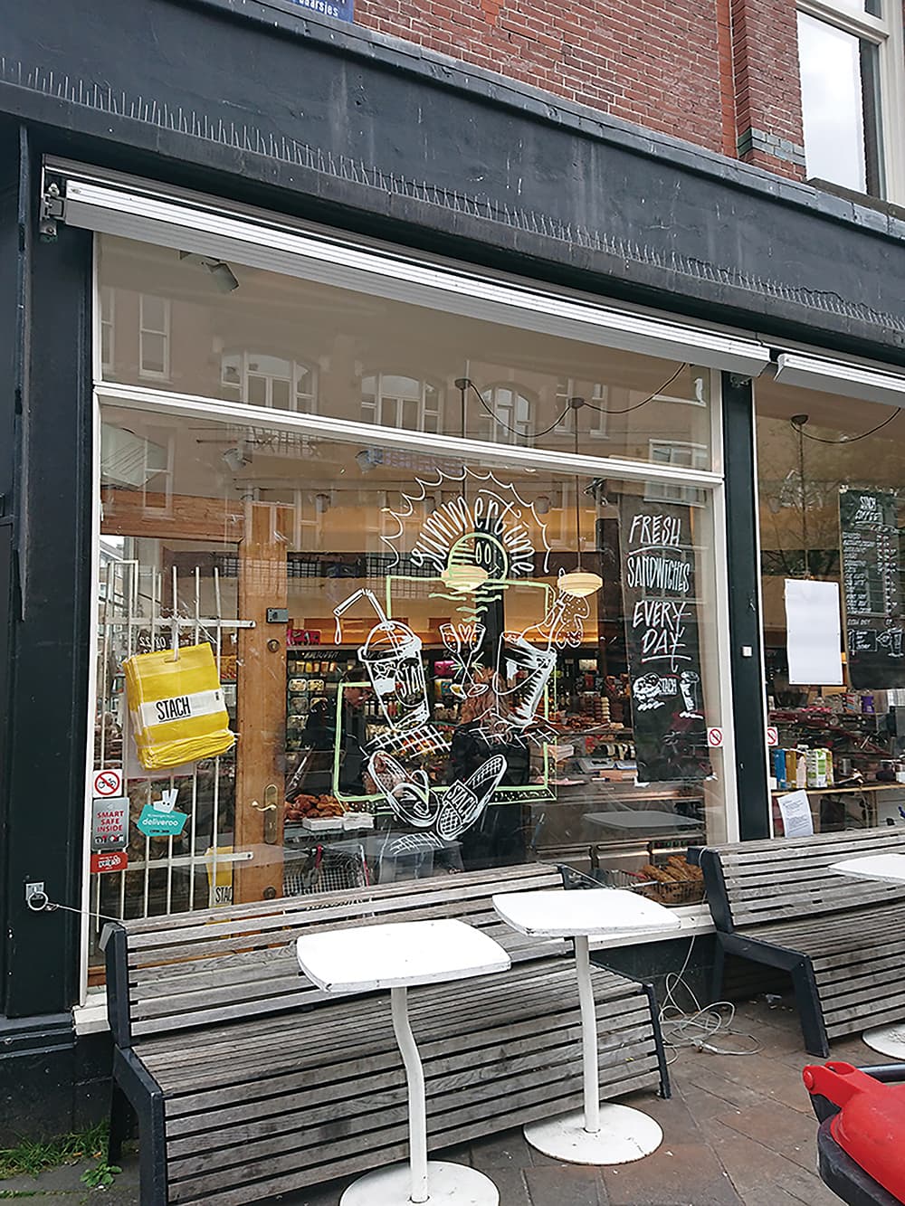 アムステルダムの道には、トラムと車が走る車線、そしてなんと自転車専用レーンがありました!ワークショップ初日、スタジオを探していると、ものすごいスピードで自転車の大群が! 知らずに自転車専用レーンに立っていた私は、ぶつかりそうになる前に歩行者レーンへジャンプ! アムステルダムでは、自分がどのレーンにいるか気をつけましょう!