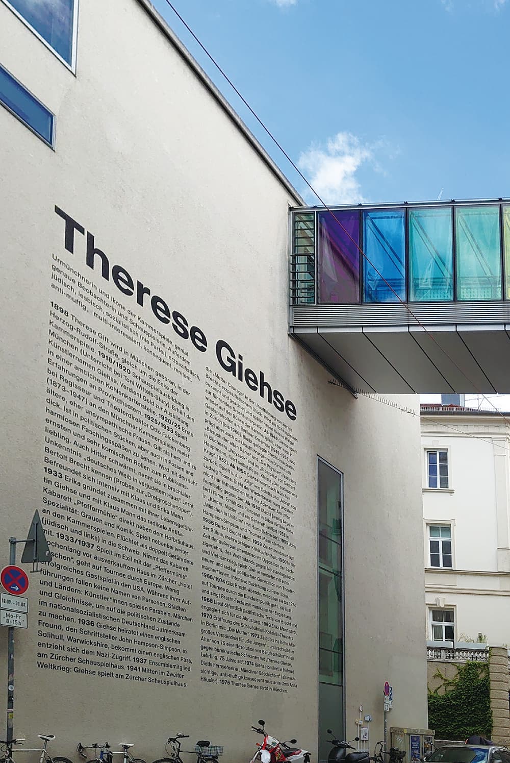 劇場の建物側面には、ミュンヘン出身のドイツ系ユダヤ人女優テレーゼ・ギーゼの文字が。