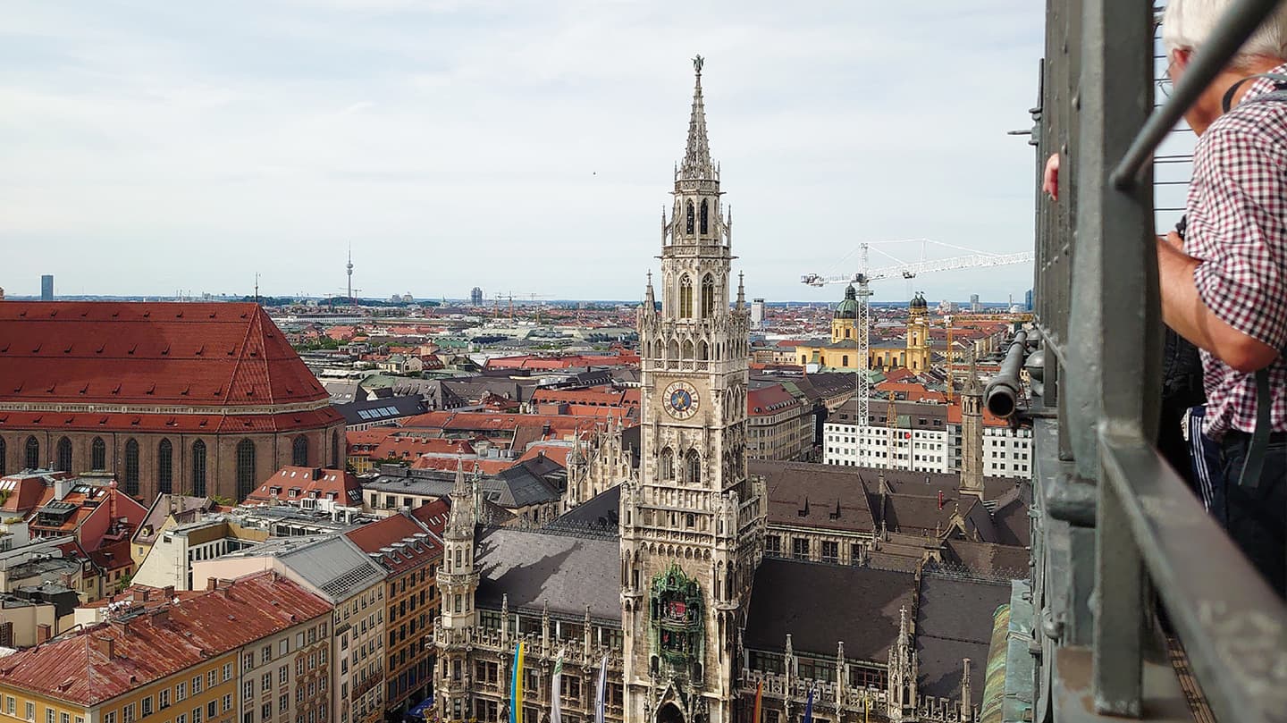 聖ペーター教会の塔から一望できるミュンヘンの街並み。中央はミュンヘン新市庁舎。