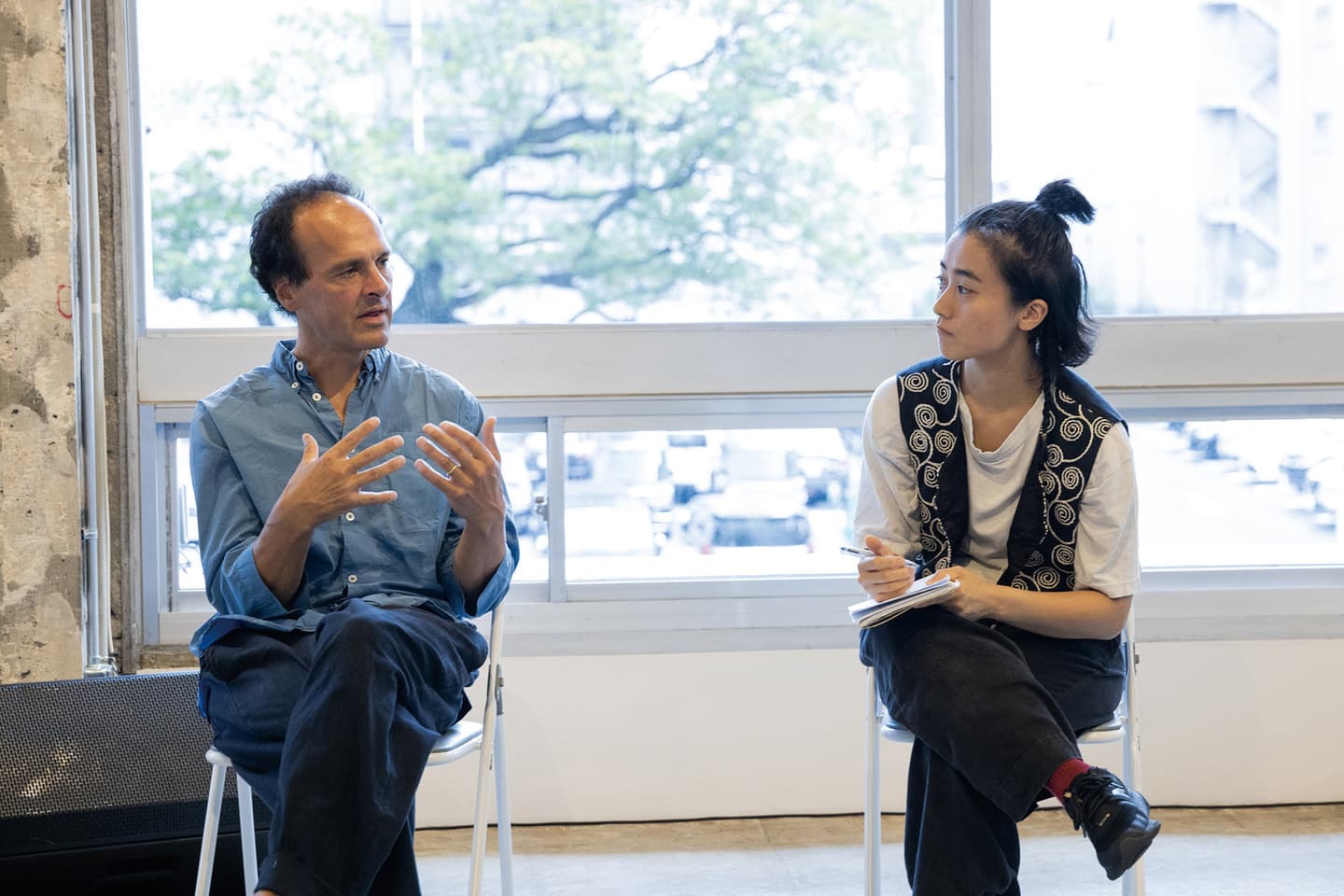 コンクリートむきだしの会場は、空間に対抗して動いてみる挑戦を支えてくれた気がします。ロンドンで出会ったサイモンに、生まれ育った故郷福岡で会えたのは終始不思議な感覚でしたが、彼が見た福岡の街や自然の景色、聴こえてきたカラスや蝉の鳴き声、信号機の音楽など、サイモンが体感した福岡を通して、私も改めて福岡を感じました。
