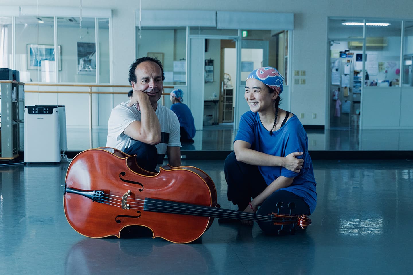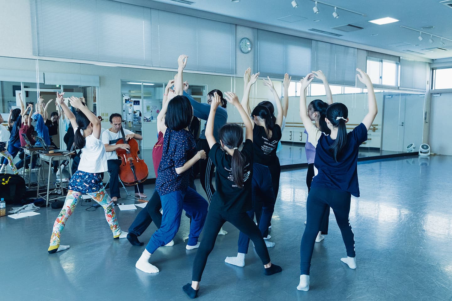 ②幼少期に学んだ福岡のバレエスタジオにて、チェロの生音と踊るワークショップを開催。