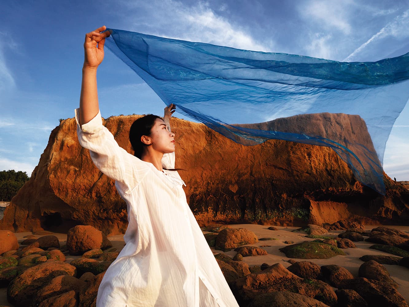④福岡市東区奈多海岸にて、青空の下、海風を受けながら。