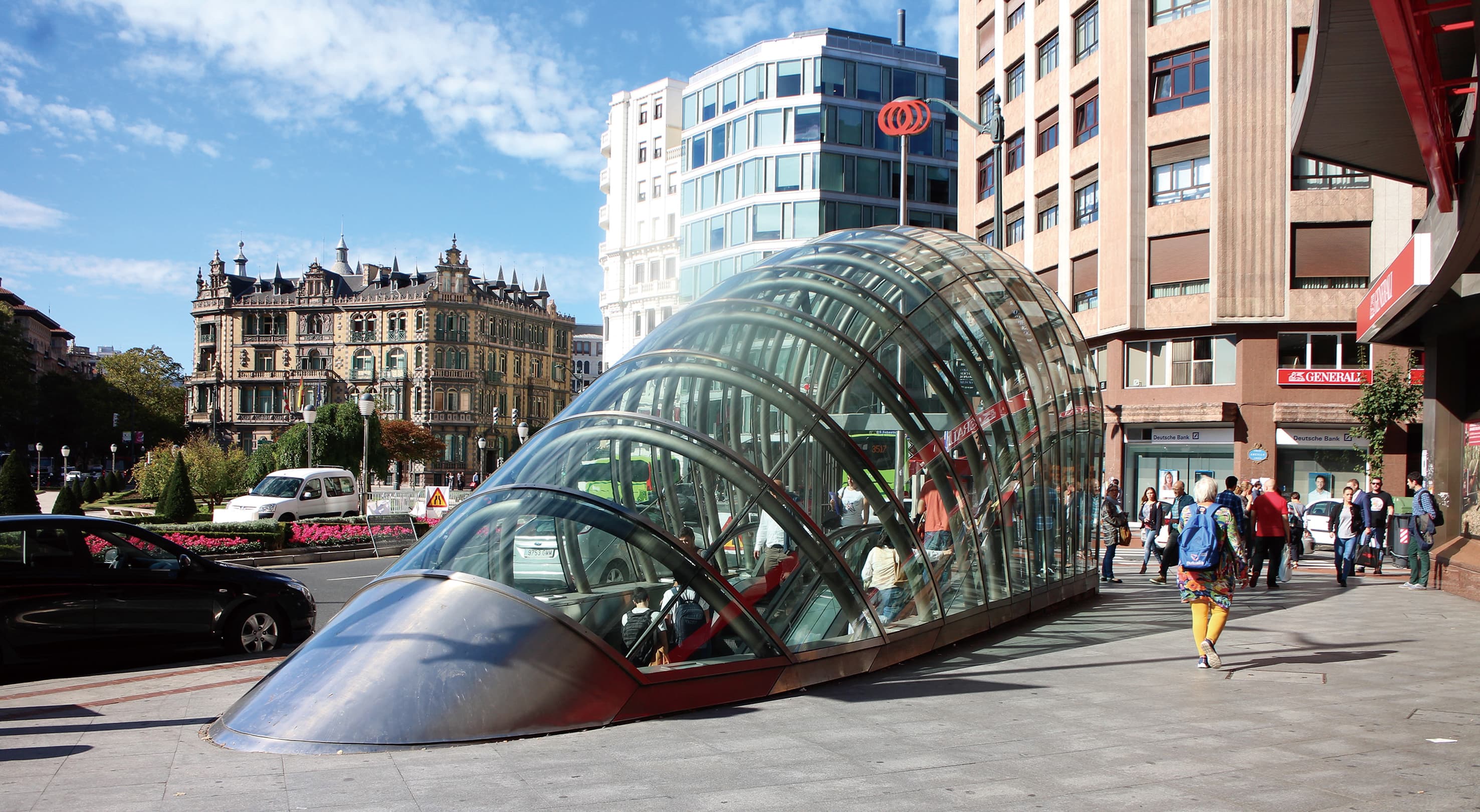 今回は、「グッゲンハイム美術館」(フランク・ゲーリー設計)と同じビルバオBilbao市にあるメトロ(地下鉄)を紹介します。「グッゲンハイム美術館」は単なるひとつの美術館ではなく、同市を工業都市から美しい文化都市に蘇生させるプロジェクトの中心となるモニュメントでした。そして今回のビルバオ市のメトロも、インフラ設備にデザイン性と芸術性を織り込んだ建築作品とするという考えから産み出されたものです。