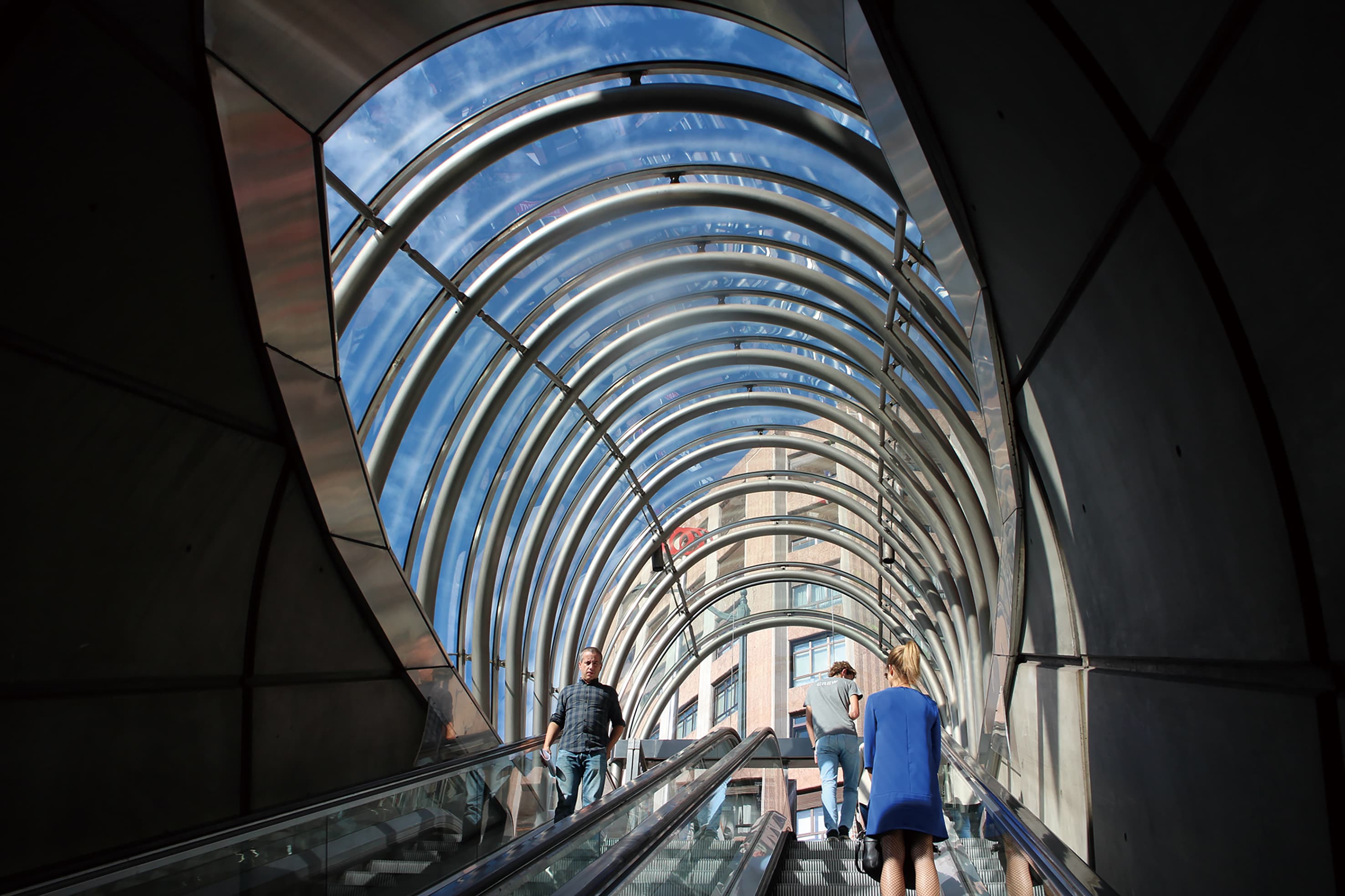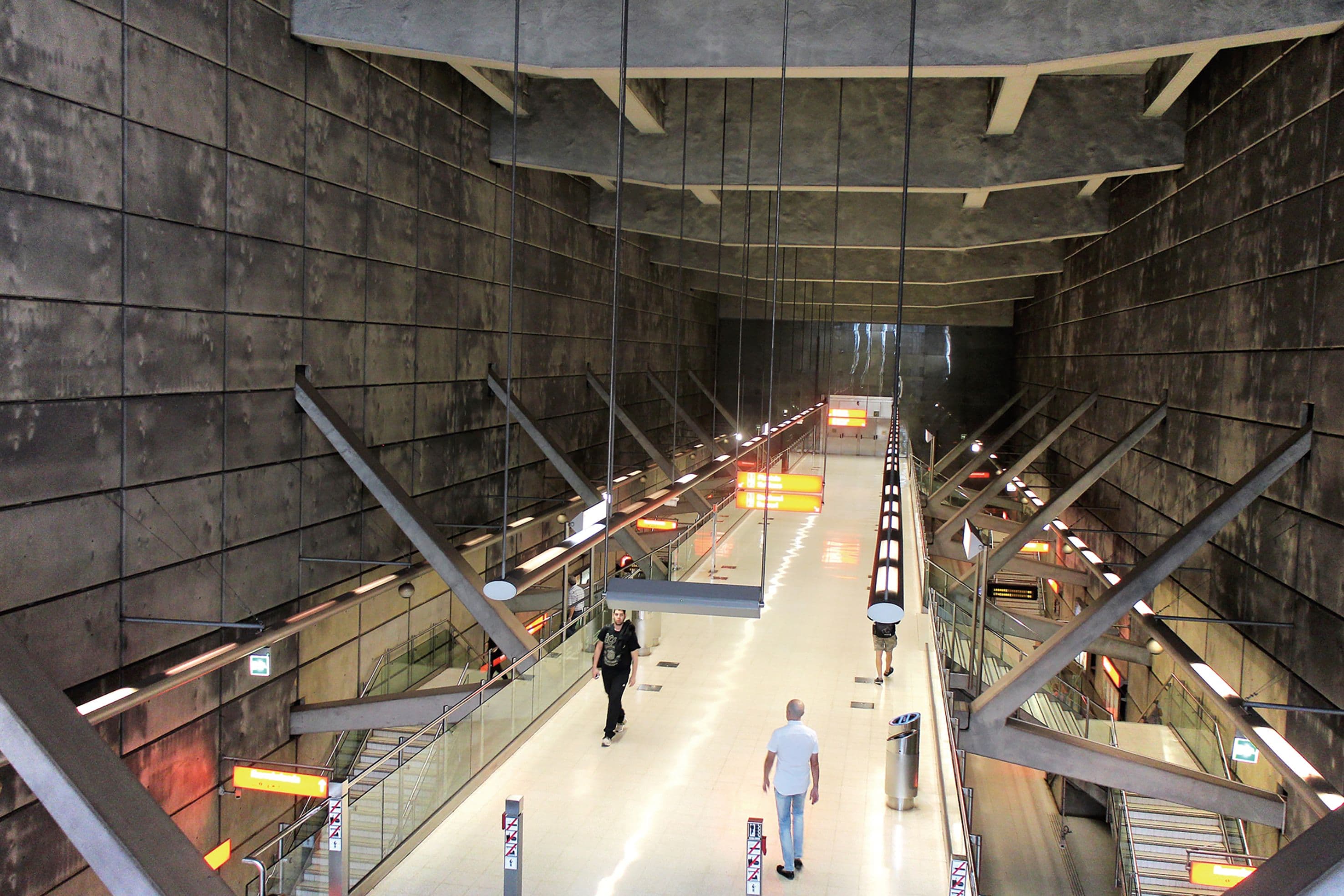 また、1番線をモユア駅から西に行って4駅目にあるサリコSarriko駅は、98年に鉄道デザインのブルネル賞を受賞しています。実際にこの駅に行ってみますと、まず目にするのは、駅のプラットフォーム自体が、非常に天井が高い空間になっていることで、地下鉄に有りがちな圧迫感が全く感じられません。また地上に上がるためのエスカレーターも特別に広々と作られており、地上に出る部分も総ガラス張りのアトリウムになっているという贅沢さです。このため地下のプラットフォームにさえ自然光が届くという効果があるわけです。