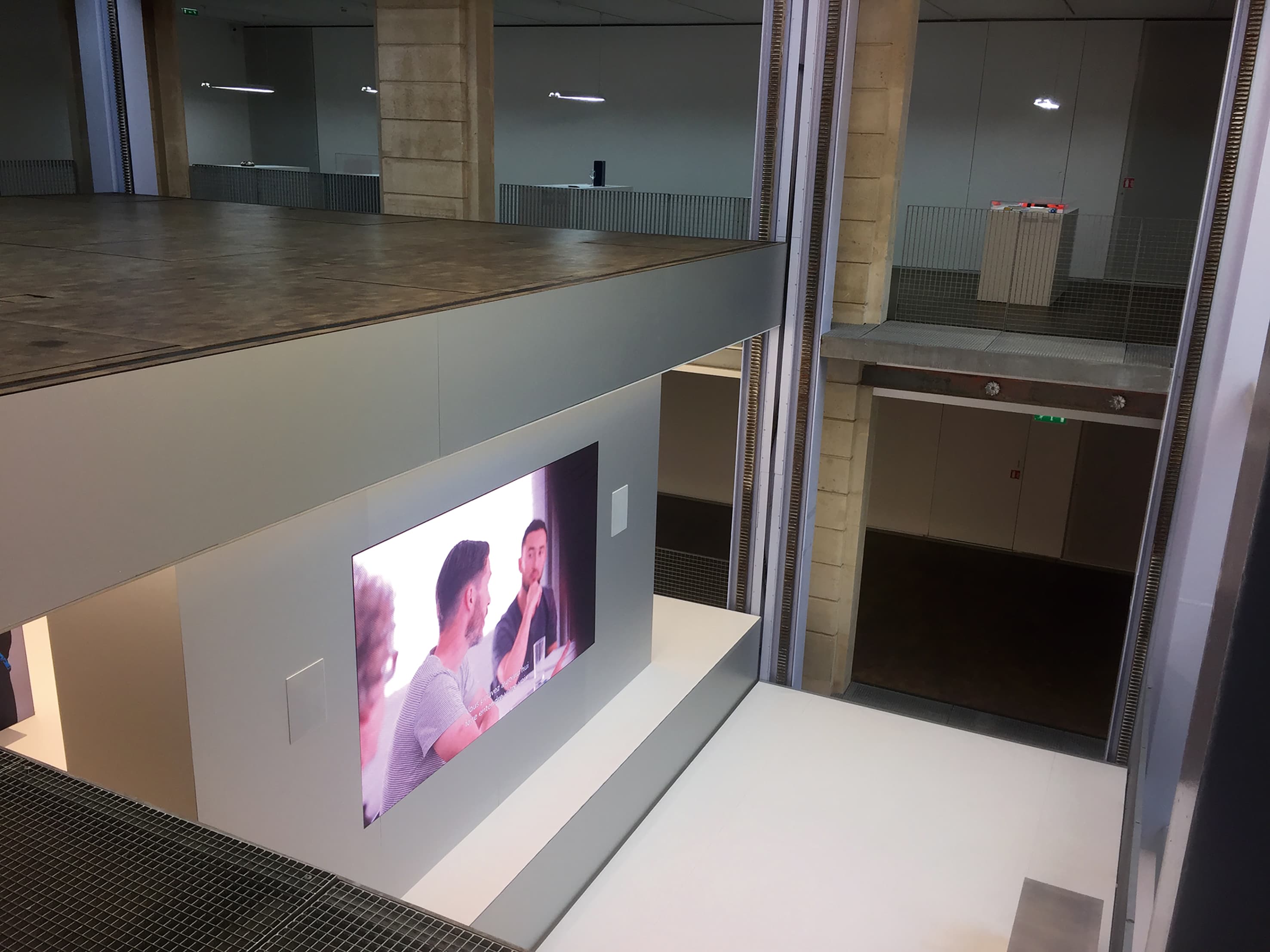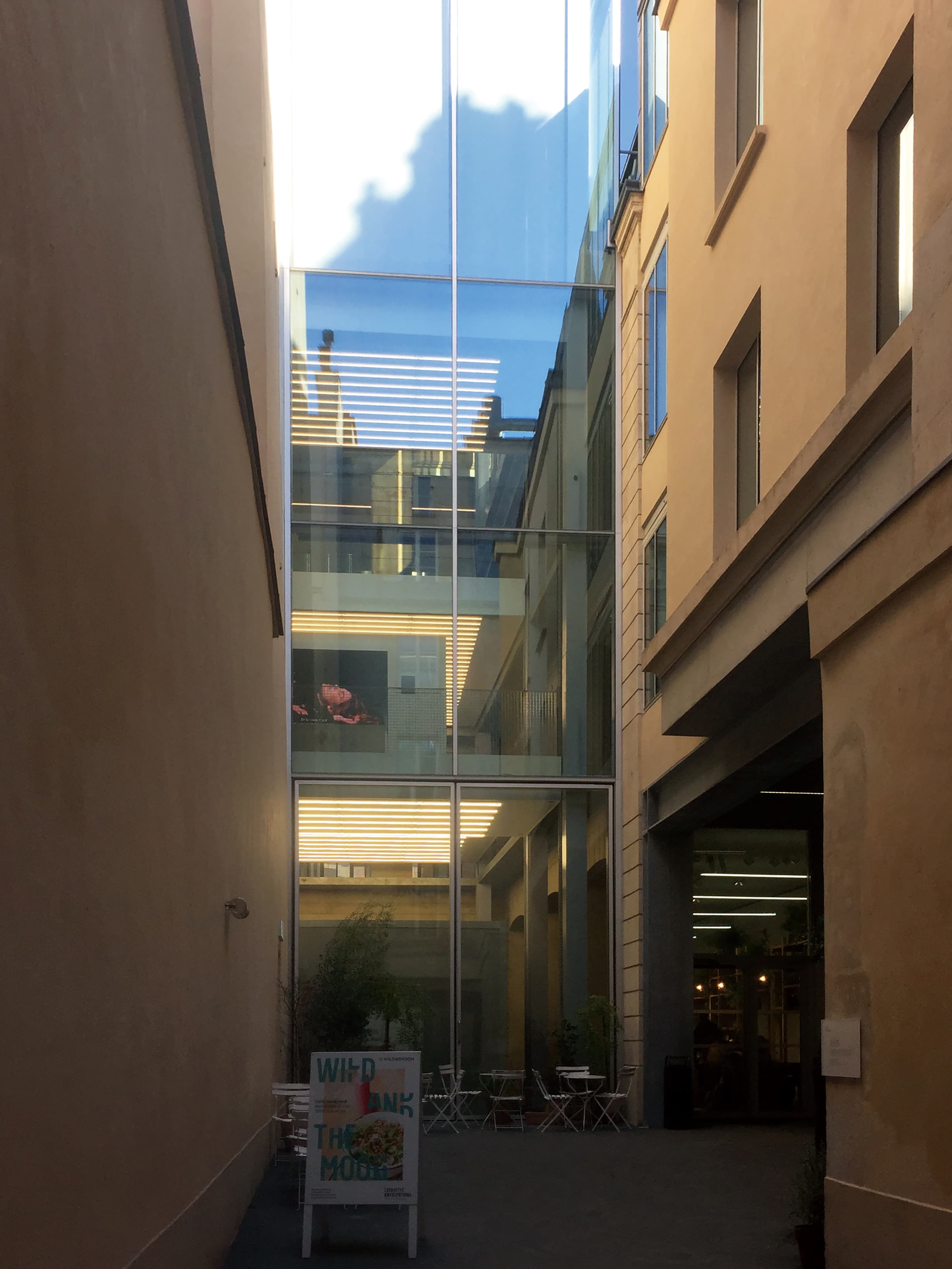 こちらの建物はブールバール・オスマンにある有名な老舗デパート、ギャラリー・ラファイエット(Galeries Lafayette)を運営している財団が所有・運営しています。19世紀に建造された建物(かつては倉庫や帽子の製作所、最近では学校として使われていた)を再建したものです。新しい建物は各種芸術の展示空間、イベントハウスとして竣工しました。ここでは単なる展示を行うだけではなく、創作家たちが集い合って新たな創造を生み出すことができるような空間を意図しているそうです。