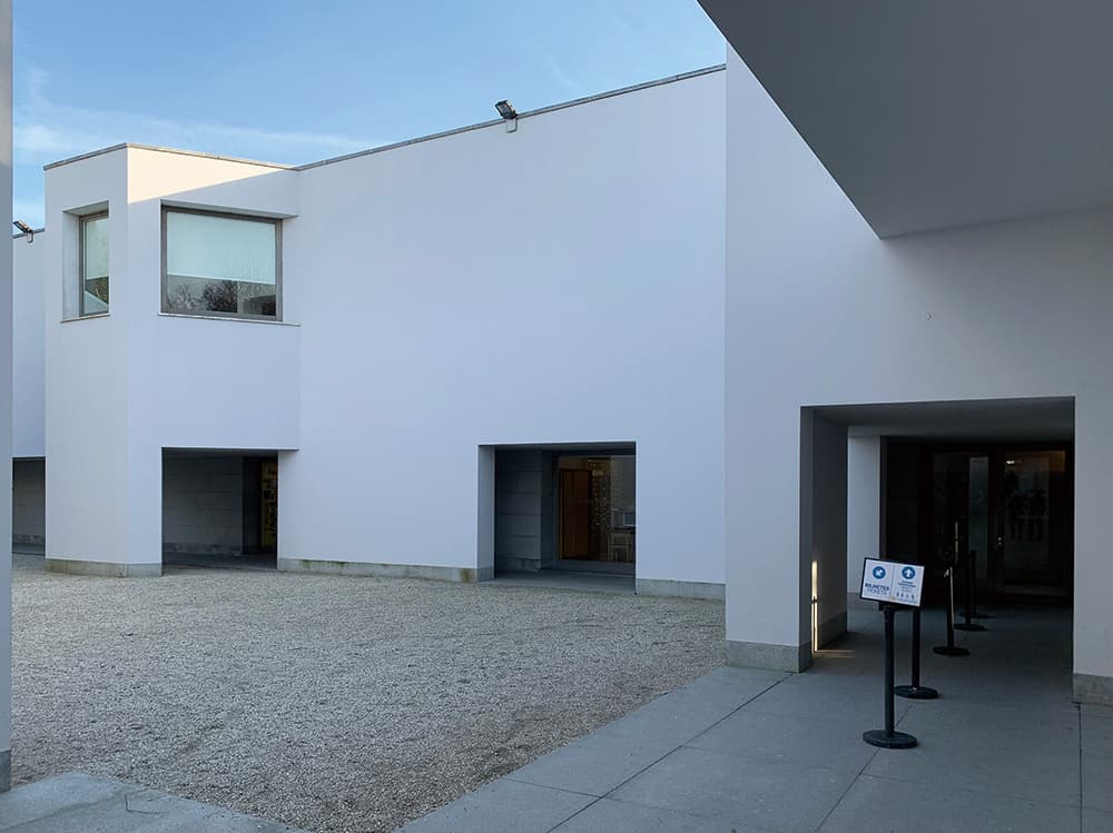 まず、シザの作品は、ポルト市の西部にあるセラルヴェス(Serralves)現代美術館が彼の代表作品と言ってよいでしょう。この美術館は、セラルヴェス財団が所有する18㌶に及ぶ広大な公園の中にあり、主に現代アートの展示を行っています。シザの1999年の作品で、建築物の規模としてはそれほど大きなものではなく、高さもほぼ平屋と言ってよいくらい抑制された建物です。シザの建築の特徴として挙げられる、白の直線的な壁がここでもふんだんに使われています。シザの作品によく登場する、外部と建物の内部を区別する遮壁の存在がこの建物にも見られます。それらはまずこの美術館のエントランスやアプローチに見られ、独特な雰囲気を醸し出しています。更に、美術館の内部にも、空間を遮断する白い壁が多用されています。
