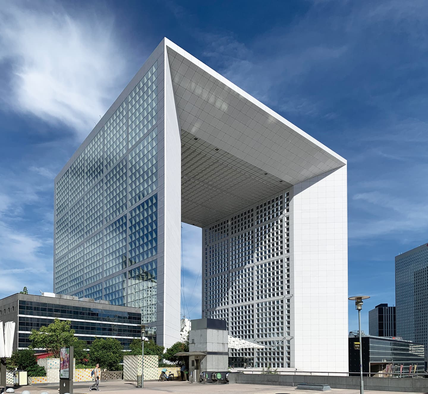 その中で、1989年竣工のグランド・アルシュ(新凱旋門)や、1995年竣工のソシエテ・ジェネラル銀行本社ビルなどの、特徴的な外観の建築が現れ始めました。21世紀に入ると、新しく建築あるいは改装されたビルたちは、外観・形状が個性豊かなものが多くなります。その結果、ラ・デファンスは、わざわざビル・ウォッチングをするために散歩に行くのが楽しく感じられるような街へと変化してきました。現在この地区で最も高さのある、2011年に改装されたトゥール・ファーストや、2014年竣工のトゥール・マジュンガも、そのようなビルとして挙げられます。