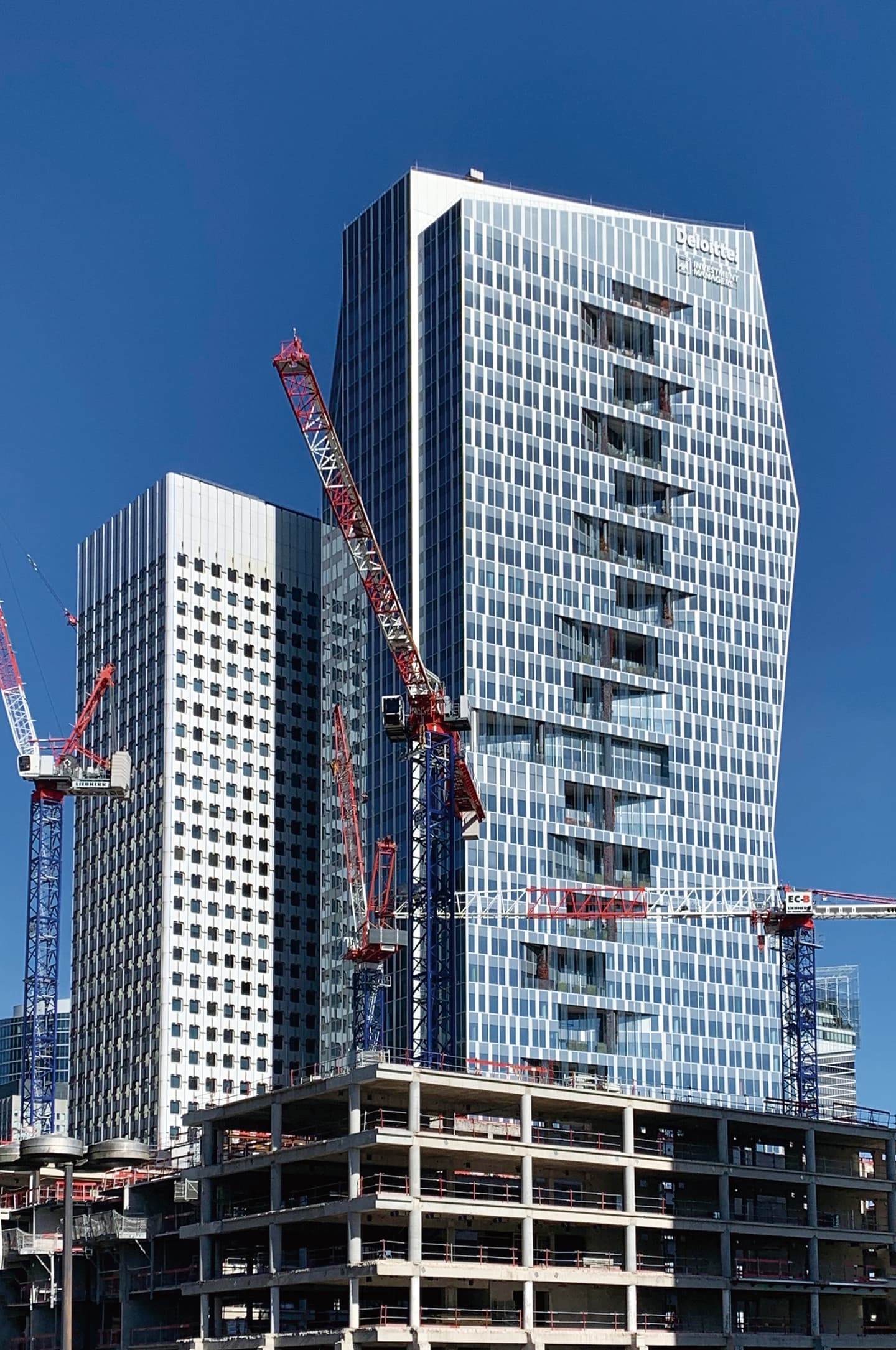 高さ220㍍、51階建てとなるトゥール・エクラ(La Tour Hekla etc.,)もそのひとつ。建物本体はほぼ完成済みで、本年中の竣工を目指して、最終段階の工事が進められています。主要用途はオフィスとなる予定です。