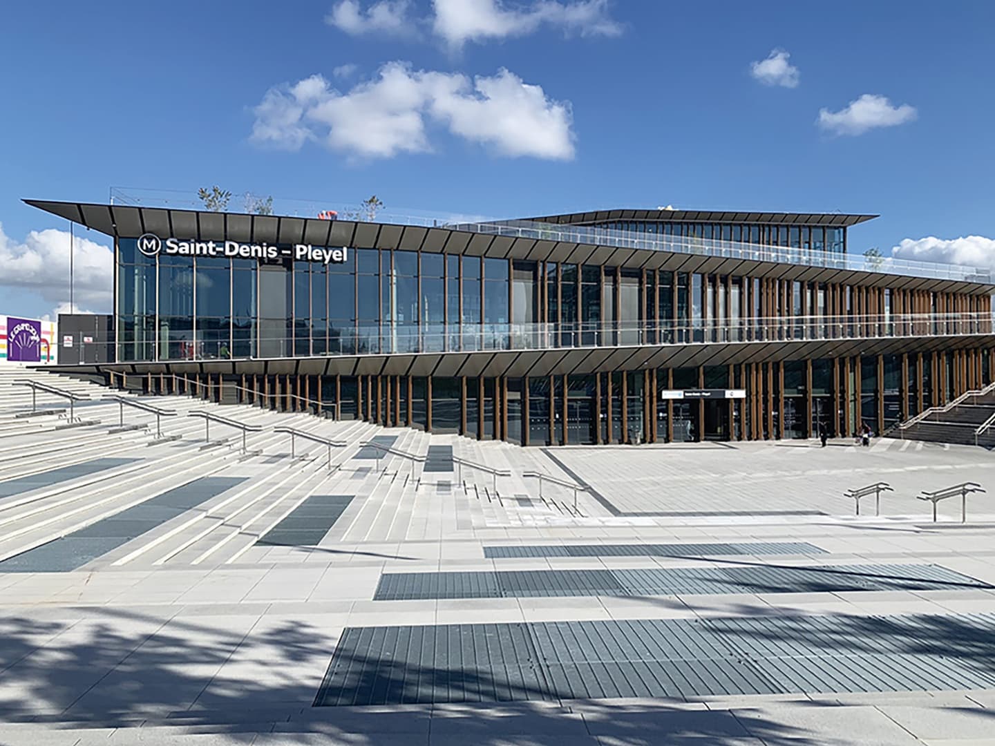 この大会中、閉会式や陸上競技の主たる会場になったのが、パリ北方のサン・ドニ市にあるスタッド・ド・フランス(Stade de France)で、この会場に集まる観客の足を保証する公共交通手段のひとつになったのが、メトロ14番線でした。そしてスタッド・ド・フランスまで徒歩20分程度のところに新設されたのが、今回ご紹介するサン・ドニ・プレイエル(Saint-Denis-Pleyel)駅で、メトロ14番線の終着駅となっています。