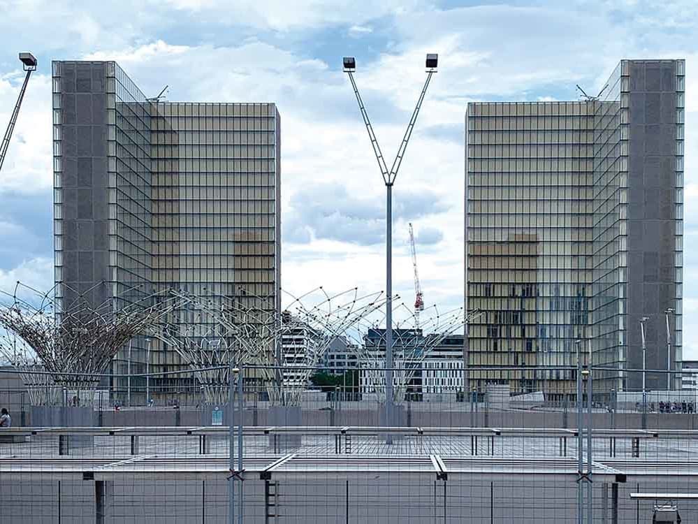 ミッテラン図書館北西と南西の棟。印象的な対称性。