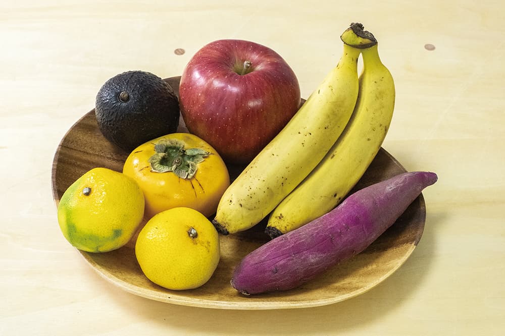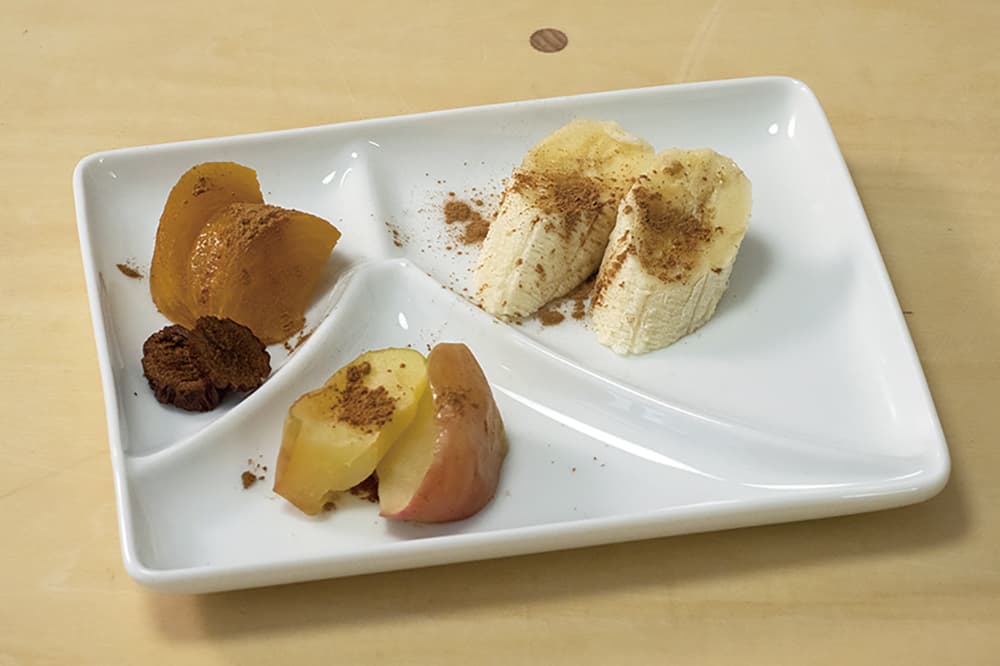 柿やリンゴはシナモンパウダーを振りかけ、電子レンジで温めたもの(500wで30秒ほど)。バナナは切ってシナモンパウダーをふりかけるだけ。