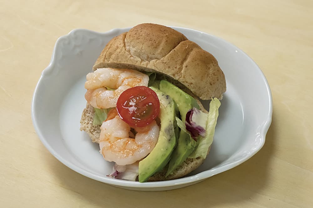 ボイルした海老、アボカド、レタス、ブロッコリー