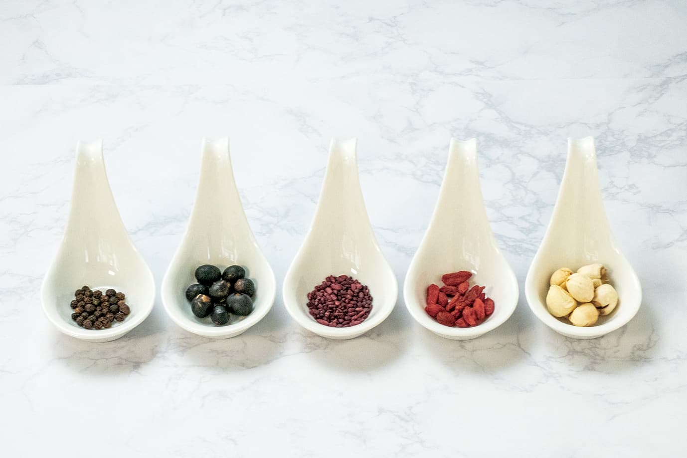 ④ クコの実(6~8粒)を加えて軽く混ぜる。