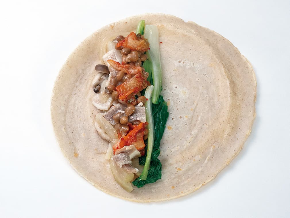 「メミルチョンビョン」の生地に、季節の野菜や果物などを挟んで旬の食材を楽しんでください。