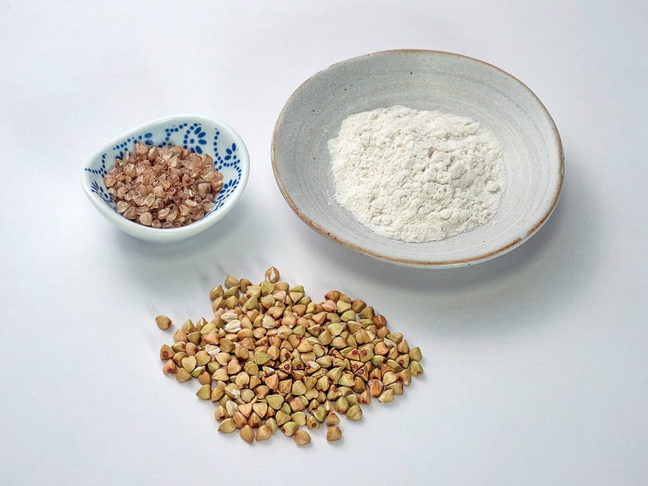 蕎麦米:蕎麦の実を水に浸した後に蒸し乾燥させて殻をとったもの