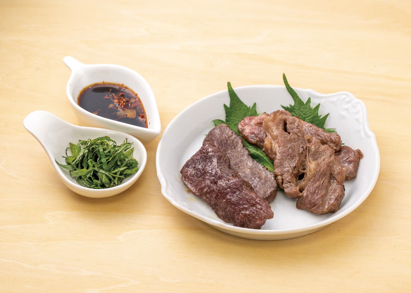 ※盛り付け例:青ジソの千切りをトッピングしたり、お好みで紅花醤油ドレッシングをかけるとさっぱりします。