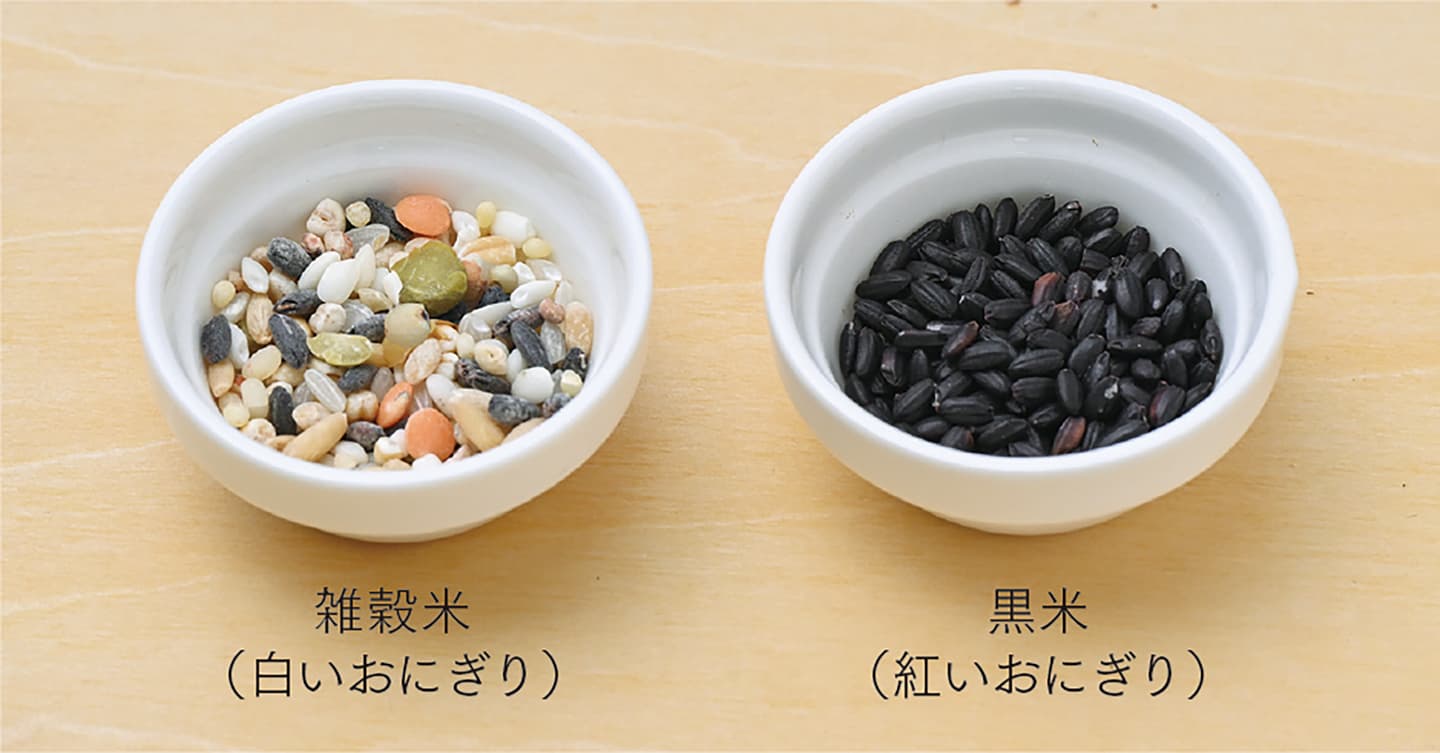 雑穀米を集めてつくるおにぎりは、それぞれの効能で身体を補・捨。黒米などの“黒い食材”には腎臓の働きを高める効果があり、寒い冬に弱りがちな「腎」を補う食材として適しています。