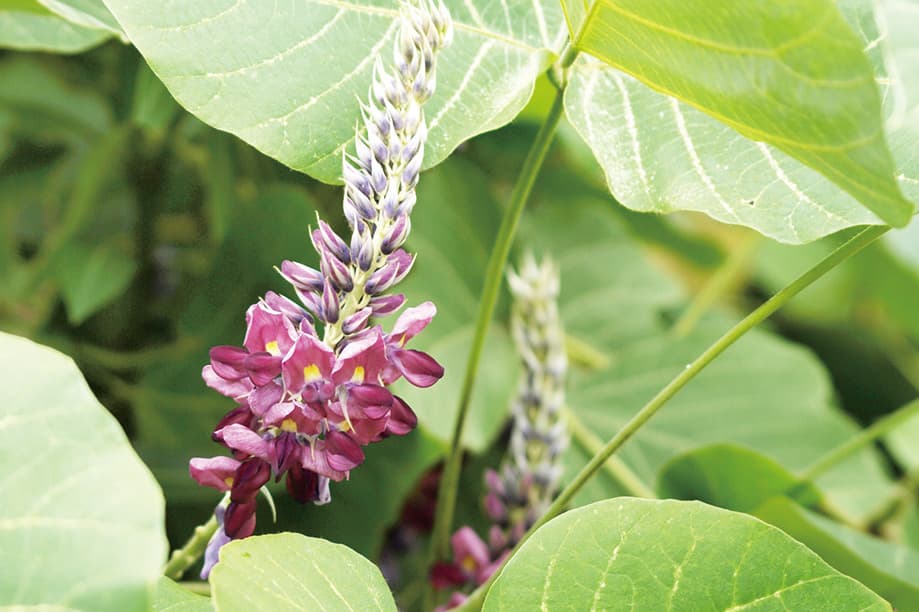 その中でも葛は、古くから食用だけでなく薬用にも用いられてきました。風邪の薬で有名な「葛根湯」は、葛の根から作られています。葛の根には女性のホルモンに似た作用のある数種のイソフラボン類(植物エストロゲン)が豊富に含まれており「製葛業を営む家の主には禿頭(とくとう)薄毛の人はいない」とも言われます。上半身に血行が行き届くことで、骨粗鬆症や乳がんの抑制効果、年齢を重ねた身体に起こる更年期障害への効果も期待されています。また上半身に起こる炎症、肩こりと首こりの初期症状の改善に有効と言われています。