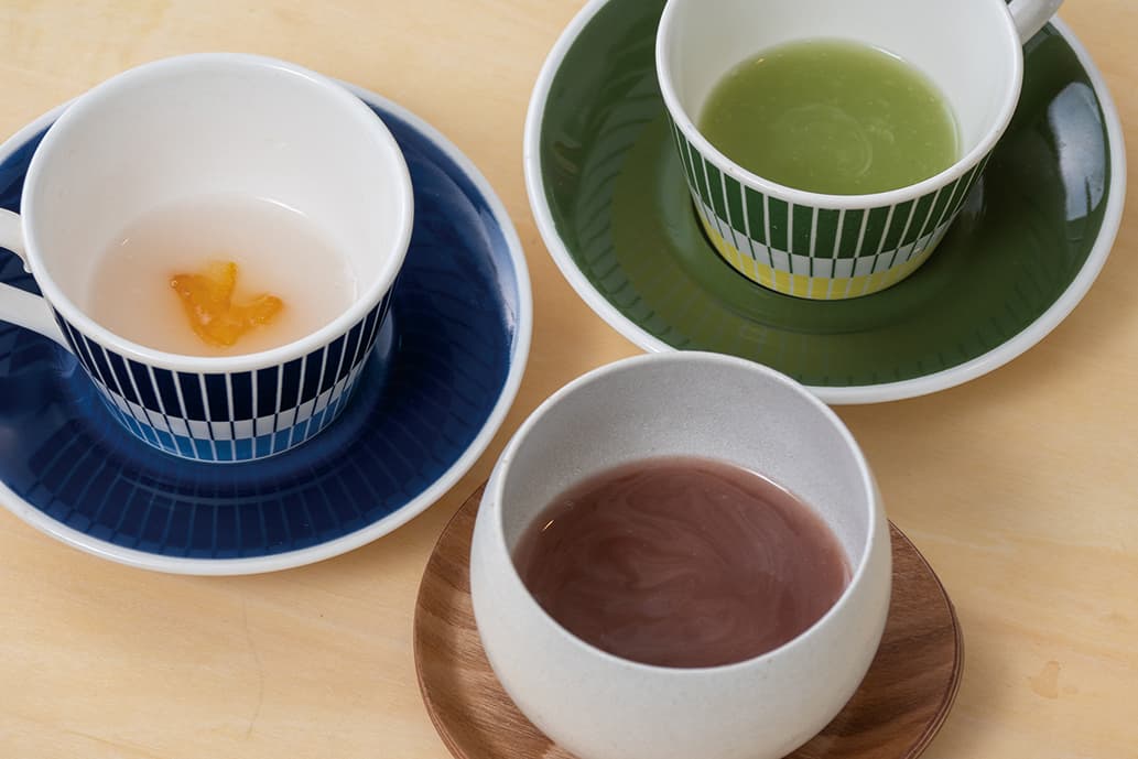 緑色は抹茶の葛湯。喉風邪かな? のときは抹茶の葛湯です。