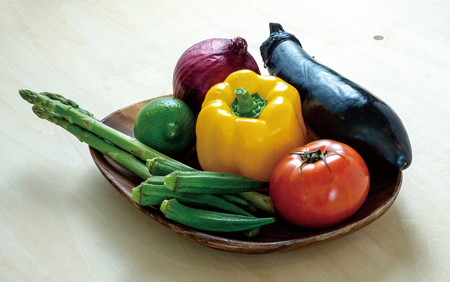 ④ 器に①を入れて③をかけ、フレッシュな夏の野菜を添える。