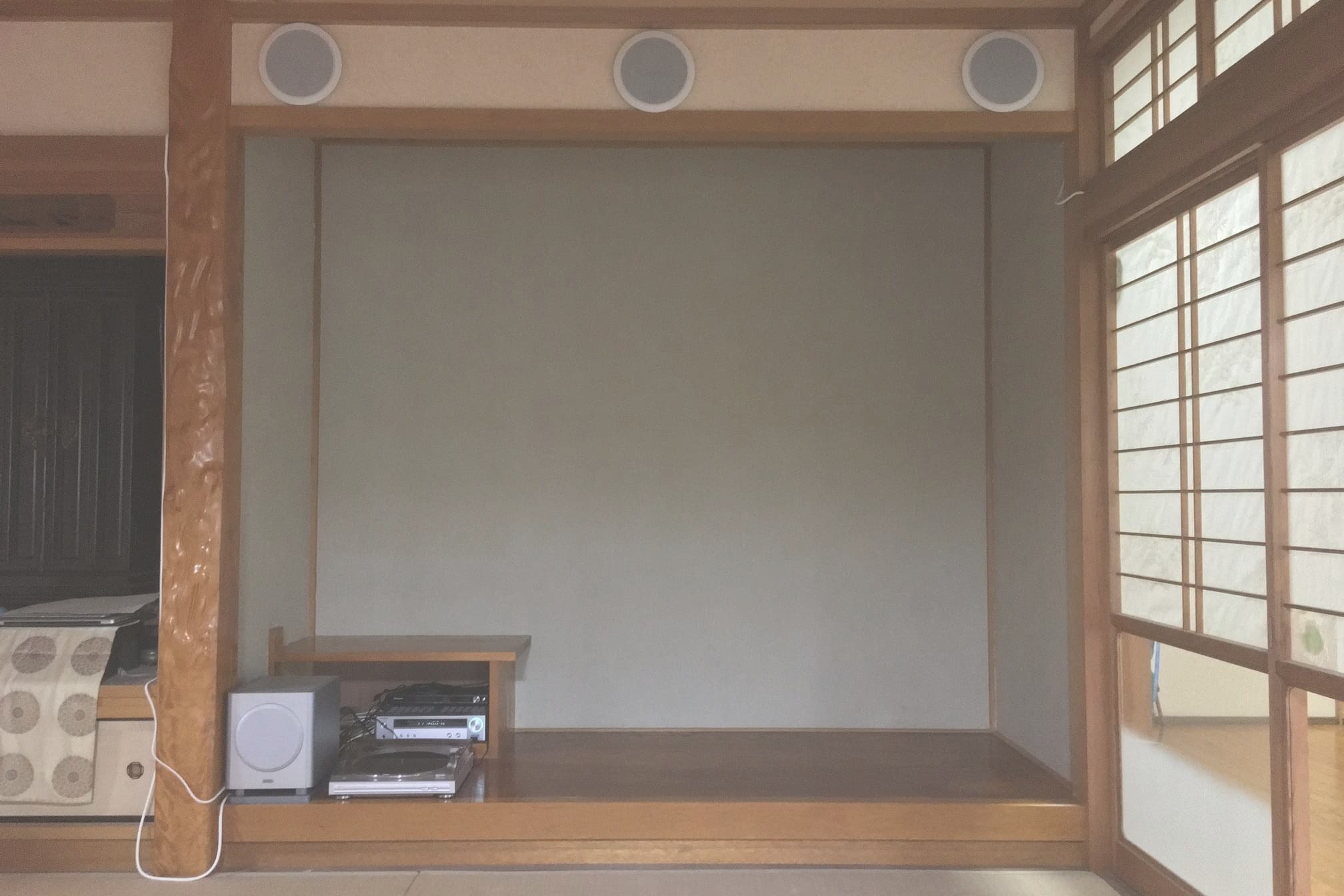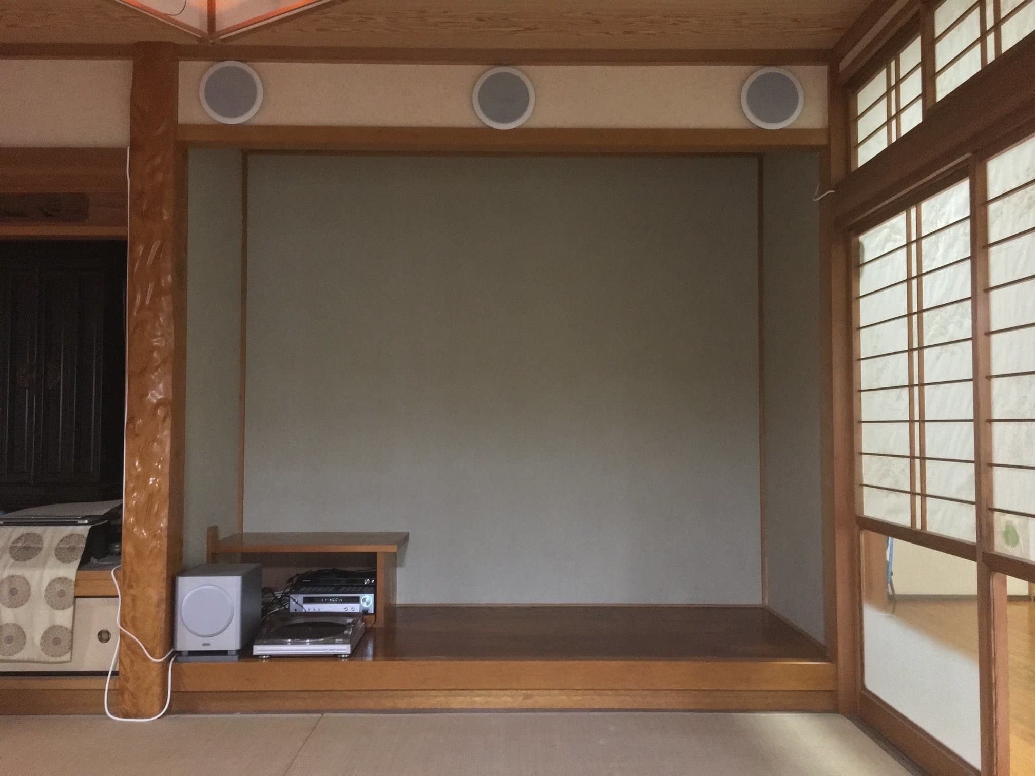 次回は、プロジェクターの設置台、左側の仏壇やなーw